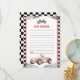 Tarjeta de nota del cápsula del tiempo de cumpleaños de niña de coche de carreras