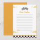 Tarjeta de nota del cápsula del tiempo de la fiesta de cumpleaños del coche de carreras