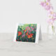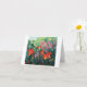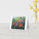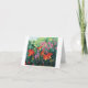 Una tarjeta de nota con hermosos dias naranjas rojos, flores de vinagre de fucsia y semillas de amapola basadas en una pintura al óleo de Joan C. Thomson de un jardín en el Valle de Shenandoah de Virginia