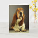 ¡Envíen algo de amor a Basset! En la moderna era de la tecnología no hay nada más dulce que recibir una nota personalizada y escrita a mano de amigos y familiares. Este monótono protector en blanco presenta un cachorro de perrito de la coraza Basset apoyado en un fondo gris. Este dulce Basset está listo para ayudarte a enviar saludos a amigos y familiares.