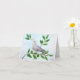 Tarjeta de nota en blanco con paloma y rama de olivo que simboliza la paz y un verso inspirador.