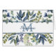 Un borde de bonito de hojas y follaje índigo azul y verde en la parte superior e inferior de la parte delantera de esta tarjeta de nota personalizada hace un marco agradable para el texto personalizado en azul coincidente en el centro. El interior de esta tarjeta se deja en blanco para su propio mensaje. ¡Maravilloso para muchas ocasiones, o sólo para mantenerse en contacto, y personalizado sólo para ti!