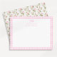 Tarjeta de nota para bebé floral rosa de Gingham y