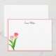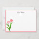 Tarjeta de nota del personalizado mostrada en blanco con encantadores tulipanes de color rosa primavera con gotitas de agua y con un guarnecido de borde rosa. Los sobres incluían el Personalizar de esta tarjeta y el cambio del nombre al tuyo o incluso el cambio de color.
