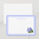 La tarjeta plana de nota plana se muestra en blanco con un guarnecido azul de doble borde y una hermosa huella de flor azul de horangea. Personalizar esta tarjeta y cambia el nombre del ejemplo al suyo con esta plantilla. Imagen de stock