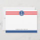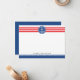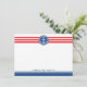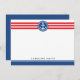 Tarjeta de nota plana personalizada con un ancla blanca dentro de un emblema azul con borde blanco. En la parte superior hay tres rayas rojas y en la parte inferior un borde azul oscuro. Nombre del personalizable.