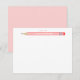 Tarjeta plana 'Una nota de' para niños que presenta un lápiz dibujado a mano. Dentro del lápiz es donde la tarjeta de nota se puede personalizar. Los colores son tonos de rosa con un toque de rayas azules. Esta tarjeta de nota es ideal como tarjeta de agradecimiento o como tarjeta de invitación a mi fiesta o para un simple hola. Estas adorables tarjetas de notas personalizadas ayudarán a fomentar en los pequeños sus habilidades de escritura y ortografía.