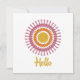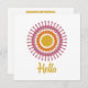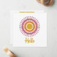 Este diseño presenta una tarjeta de nota plana Retro Sunburst en morado, Naranja y dorado con un tipo de letra llamativo que dice: Hola. Esta tarjeta de notas es ideal para saludar a amigos y familiares o para enviar una nota corta para mantenerse en contacto. El reverso de esta tarjeta puede ser personalizado con su nombre o con el nombre de otra persona y entregarse como regalo. Los Sunbursts son un motivo de diseño icónico que transmite energía positiva y una sensación de renovación. Este diseño de la explosión solar también está disponible en variaciones de color adicionales y productos adicionales, por favor visite nuestra tienda para ver detalles adicionales. También hay sobres blancos opcionales disponibles.