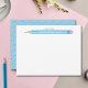 Tarjeta plana 'Una nota de' para niños con un lápiz dibujado a mano. Dentro del lápiz es donde la tarjeta puede ser personalizada. Los colores son tonos de azul con un toque de rosa para la goma del lápiz. Esta tarjeta es ideal como tarjeta de agradecimiento o como invitación a una fiesta o para escribir un simple hola. Estas adorables tarjetas personalizadas ayudarán a fomentar las habilidades de escritura de tu pequeño.