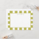 Una tarjeta de nota fresca y animada con un marco de cuadros verde cítrico que aporta un tono moderno y alegre. El patrón geométrico da al diseño un toque de moda mientras lo mantiene limpio y minimalista. Perfecta para notas de agradecimiento, notas adjuntas a regalos, mensajes para invitados, notas dentro de paquetes o papelería coordinada para eventos. El borde a cuadros añade decoración sin abrumar el diseño. El encabezado se puede personalizar fácilmente.