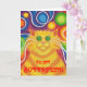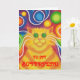 ¡Bebé! Un gato amarillo y naranja a rayas con bigotes giratorios y un fondo sicodélico con motivos de arco iris. Tarjeta de felicitación con un diseño de personalizable amarillo, naranja, rojo, azul, verde, rosa, púrpura y blanco para que pueda personalizar con su propio texto, imágenes e ideas.Un dibujo original de lápiz de colores realzados digitalmente por Jess Perry.