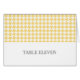 Tarjeta Houndstoth Table Number Card sencilla pero elegante con fondo de gafas amarillo y blanco. Fácil de personalizar con los detalles de su boda. Para obtener más opciones de personalización, haga clic en el botón Personalizar.