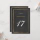 Tarjetas de número de mesa para bodas con efecto de lámina dorada falsa y blanco sobre un fondo negro con textura de pizarra sutil. Fuentes clásicas de escritura y serif. Tenga en cuenta que la lámina dorada es un efecto impreso: no se utilizará ninguna lámina metálica real en la invitación.