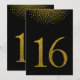 Tarjeta de número de mesa con brillo dorado falso