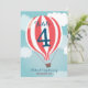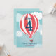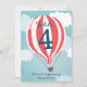 Personalice esta encantadora tarjeta de número de mesa, diseñada con una ilustración original de un globo aerostático de rayas rojas y blancas volando alto en el cielo azul con nubes blancas.