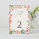Tarjeta de número de mesa con letra de flor silves