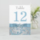 Continúe el tema de su boda de Navidad o invierno con esta elegante tarjeta de número de mesa de recepción de boda con patrón de damasco de brillo falso de flores gris plateado y azul hielo de 5 "x7" de doble cara que tiene un fondo de copos de nieve blancos surtidos y una cinta y lazo de acero azul impreso con un par de joyas de diamantes y corazones unidos de brillo azul falso en ella. Sería perfecto para un tema de tierra de ensueño de invierno o para una boda de Navidad o Nochevieja. ***POR FAVOR TOME NOTA de que no hay elementos en relieve en esta invitación. Todo está impreso plano. Se muestra aquí en papel básico, pero podría sostenerse fácilmente por sí solo con el papel premium triple grueso. **Usted DEBE cambiar el número 12 a cada uno de los números de mesa que necesite, agregarlo al carrito y luego regresar y repetir el proceso hasta que tenga todas las tarjetas numeradas individualmente que necesite en su carrito. Colóquelo en un pequeño caballete o en sus centros de mesa. ***POR FAVOR TOME NOTA de que si cambia las fuentes o el tamaño de las fuentes, puede alterar la forma en que se imprime su tarjeta. Se imprimirá tal como lo ve en su monitor, por lo que si tiene problemas de alineación o problemas de tamaño, por favor contácteme para obtener ayuda ANTES de realizar su pedido. No veré su tarjeta una vez que la ordene, y Zazzle NO editará nada (errores tip