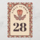 Agregue un toque de sofisticación retro a su recepción de boda con este elegante número de mesa. Con un diseño inspirado en el Art Nouveau y una paleta de tonos terrosos de la modernidad de mediados de siglo, esta tarjeta ayuda a guiar a sus invitados con estilo. El marco arqueado y la ilustración botánica central crean un punto focal artístico en cada mesa.