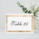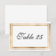 Una tarjeta de número de mesa de boda con un borde de pan de oro