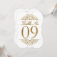 Tarjeta de número de mesa de boda con efecto brillo dorado (09)