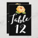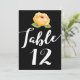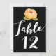 Simple, pero elegante flor de color dorado con hojas verdes en tarjeta de número de mesa negra con tipografía blanca. Ver más en Heart Song Notes aquí en Zazzle.