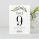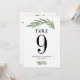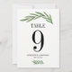 Tarjeta de número de mesa de boda con hoja de verd