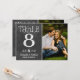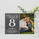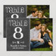 La caligrafía de estilo pizarra y una gran foto en un fondo oscuro de pizarra crean una encantadora tarjeta de número de mesa de boda rústica. Los nombres de la pareja y la fecha de la boda se muestran en letras decorativas debajo de la foto. Para personalizar, escriba el número de mesa, haga clic en Cambiar junto a la foto predeterminada para subir la suya, y agregue esa tarjeta de número de mesa individual a su carrito de compras. Repita para todos los números de mesa que necesite.