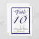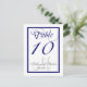 Tarjeta de número de mesa de boda de monograma azu
