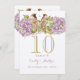 Tarjeta de Número de Mesa de Boda de Pájaro de Amor Lila Lavanda. Número de mesa de lila y bronceado dorado, letra de escritura de información de lila y espirales de bronce sobre una hermosa rama de árbol cubierta de suaves flores de primavera con dos pájaros de amor románticos sentados dulcemente uno al lado del otro. Bodas de pájaros vintage y ocasiones especiales. Señales de mesa de boda