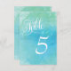 Tarjeta de número de mesa de boda de playa oceánica con acuarela.
