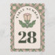 Completa tus decoraciones de mesa de recepción con estos elegantes números de mesa Art Nouveau. Con un clásico arco floral en verde salvia y rosa polvoriento, estas tarjetas dobles aseguran que tus invitados puedan encontrar sus asientos con facilidad. La rosa botánica atemporal y el borde de inspiración vintage crean un aspecto sofisticado que complementa cualquier decoración de jardín o boda boho-chic.