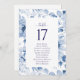 Una tarjeta de número de mesa de boda bellamente diseñada con delicadas ilustraciones florales azules y tipografía elegante. Perfecta para un tema de boda sofisticado y romántico, esta tarjeta de número de mesa también incluye los nombres de los invitados para un toque personalizado. Ideal para decoración de boda clásica, moderna o rústica.