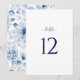 Agregue elegancia a su recepción de boda con esta tarjeta de número de mesa minimalista. Con un diseño limpio y moderno con numeración en negrita en la parte delantera y un suave patrón floral azul en la parte posterior, combina la simplicidad con un romance sutil. Perfecta para bodas contemporáneas y eventos elegantes, esta tarjeta ayuda a los invitados a encontrar sus asientos mientras agrega un toque refinado a la decoración de su mesa.