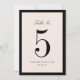 Tarjeta de número de mesa de Boda negro de eleganc