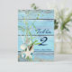Tarjeta de número de mesa de boda tropical de playa de madera azul. Están disponibles artículos coincidentes en esta colección.