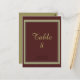 Un elegante y clásico fondo burdeos acentuado por un borde dorado en esta tarjeta de asiento. Grabado de oro. Personalizar cambiando el número y añadiendo al carro, repita para cada número.