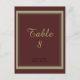 Tarjeta de número de mesa de Borgoña y Oro
