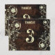 El encantador número de la mesa para la recepción, la cena y el boda. Estilo de postal plano. Imagen del viejo cuero espumoso para fondo.