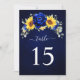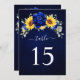 Tarjeta de número de mesa de girasol rústico azul