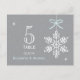 Personalice estas tarjetas de número de la mesa de recepción de la boda con copo de nieve azul menta y postales con un número de mesa, fecha de boda y nombre de la novia y el novio. Son perfectas para bodas con temática invernal o fiesta especial de ocasión. Pintura © Chrissy H. Studios, LLC. Todos Los Derechos Reservados.
