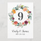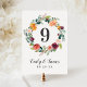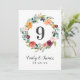 Un exuberante wreath de flores de otoño en borgoña, melocotón y verde profundo rodea el número de mesa sobre un fondo de carbón oscuro. Esta tarjeta de número de mesa de boda rústica captura el calor de una celebración de otoño con flores ricas y pintadas a mano. Los nombres de la pareja, la fecha y el número de mesa son fáciles de personalizar. Cada número de mesa debe personalizarse individualmente y agregarse al carrito uno a la vez.
