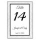 Tarjeta de número de mesa de recepción de boda de