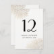 Tarjeta de número de mesa de boda de lujo con encaje vintage en hoja de oro falsa, texto blanco y negro. ¡Personalice fácilmente el texto! Por favor, visite nuestra tienda para ver una selección de productos coincidentes o contáctenos si necesita más personalizaciones, podemos crear lo que necesite. Email hello@designkandy.