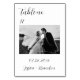 Tarjetas de número de mesa con fotos de boda elegantes, minimalistas, en blanco y negro. Puedes personalizarla con tus datos.