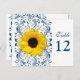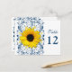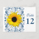 El número de la mesa de este boda de girasol floral azul marino y blanco o de la tarjeta especial de la mesa de ocasión es el personalizable. Puede cambiarlo utilizando la opción de personalización. Cambie el número de tabla, agregue una cantidad de una a su carrito y repita el proceso para todas las tarjetas que necesite. Para realizar cambios más extensos en la tarjeta, como cambiar el color de fondo, el tipo de letra, el color de la fuente o el diseño de la fuente, elija la opción personalizar. Esta es una gran tarjeta de número de mesa para un boda con un tema de girasol. Sencillo, bonito y alegre.
