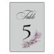 Tarjeta de número de mesa floral lila