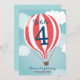 Personalice esta encantadora Tarjeta de número de mesa elegante, diseñada con una ilustración original de un globo aerostático de rayas rojas y blancas volando alto en el cielo azul con nubes blancas.