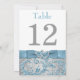 Continúe el tema de su boda de Navidad o invierno con esta elegante tarjeta de número de mesa de recepción de boda de doble cara de 5 "x7" con patrón de damasco de brillo falso floral gris plateado y azul hielo que tiene un fondo de copos de nieve blancos dispersos y una cinta y lazo de acero azul impreso con un par de joyas de diamante y corazones unidos de brillo azul falso en ella. Sería perfecto para un tema de tierra de maravillas invernales o para una boda de Navidad o Nochevieja. ***POR FAVOR TOME NOTA de que no hay elementos en relieve en esta invitación. Todo está impreso plano. Se muestra aquí en papel básico, pero podría sostenerse fácilmente por sí solo con el papel premium de triple grosor. **Usted DEBE cambiar el número 12 a cada uno de los números de mesa que necesite, agregarlo al carrito y luego regresar y repetir el proceso hasta que tenga todas las tarjetas numeradas individualmente que necesite en su carrito. Colóquelo en un pequeño caballete o en sus centros de mesa. ***POR FAVOR TOME NOTA de que si cambia las fuentes o el tamaño de las fuentes, puede alterar la forma en que se imprime su tarjeta. Se imprimirá tal como lo ve en su monitor, así que si tiene problemas de alineación o problemas de tamaño, por favor contácteme para obtener ayuda ANTES de realizar su pedido. No veré su tarjeta una vez que la ordene, y Zazzle NO editará nada (errores tipográficos, aline