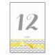Patrón moderno de chevron o zigzag en gris y blanco con tarjeta de número de mesa impresa con arco amarillo para complementar nuestro conjunto de invitación, puede ser personalizado y ordenado individualmente. Todas las partes de esta tarjeta están impresas, no hay ninguna cinta de fiar real.
