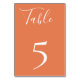 Elegante tarjeta de número de mesa de color sólido naranja polvoriento, diseñada para combinar con nuestra colección Organic Sunset.